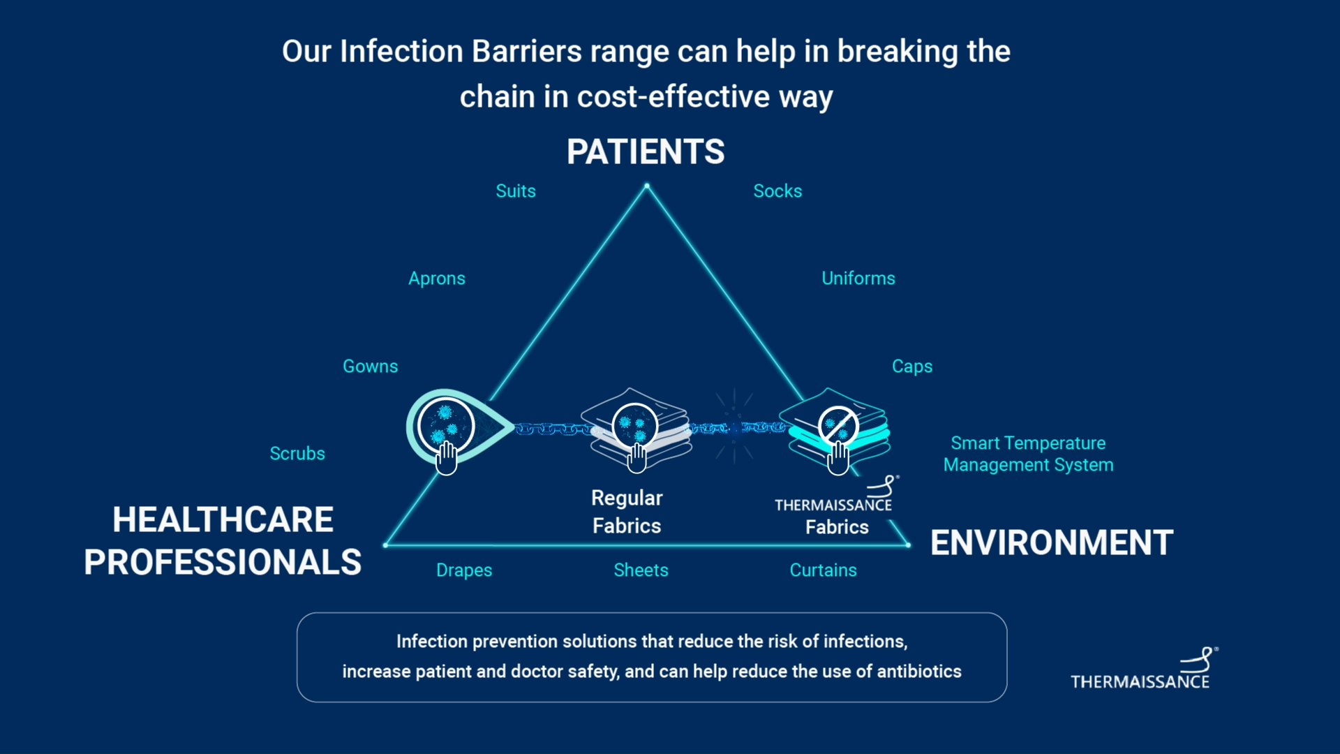 Antimicrobial Protection: Ensures a sterile environment by actively reducing microbial contamination during surgeries, reducing surgical site infections (SSIs). Quick-Drying Fabric: Facilitates faster reusability, reducing preparation time for subsequent procedures. Durable and Tear-Resistant: Retains efficacy and structural integrity over multiple sterilization cycles.