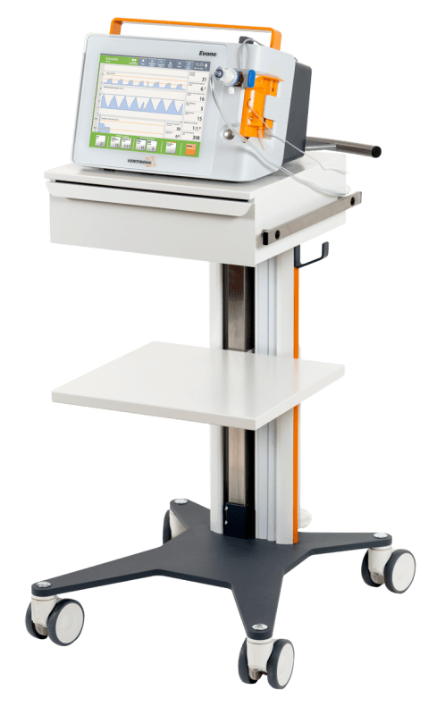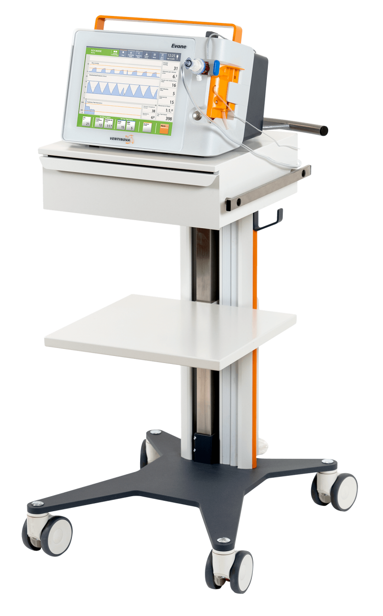 Additionally, Evone has a (High Frequency) Jet Ventilation mode, which requires an open airway. Jet ventilation can be used as breathing support while emerging the patient from mechanical ventilation to spontaneous breathing. Therefore, Evone is able to fully ventilate in case of an obstructed (sealed) airway and an open airway.
